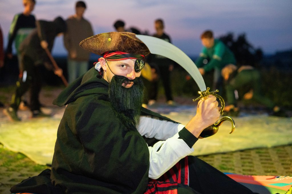 Nach dem Döner gab es abends eine Show. Mit den Bauteilen haben wir nämlich Käptn Matribarts neues Schiff gefunden, mit dem wir die Verfolgung auf seine Meuterer aufnehmen konnten. Durch verschiedene Challenges gegen unsere Gruppenleiter konnten wir genug Kanonenkugeln gewinnen um das Schiff des Meuterers kentern zu lassen. Den zweiten haben wir also auch schon geschnappt, jetzt fehlen nur noch 3.